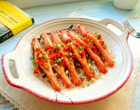 - 5. 把大虾放在粉丝上,再放上炒好的蒜末