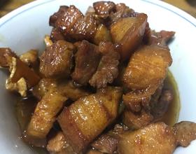 放入冰糖,小火炒至熔化出糖色后翻炒猪肉至上色