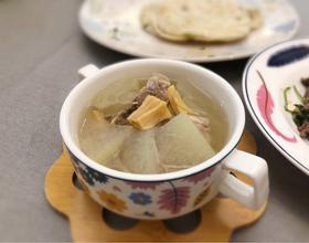 把冬瓜切片或切块放炖盅里,放一片姜。
