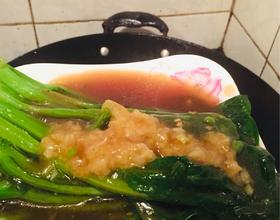 水开下入菜心,倒入适量的油和盐(接电话去了,煮的时间过长了)再次水开沸腾即可