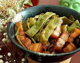 锅烧热入油烧热下入豆角煸至变深绿起小泡盛出备用