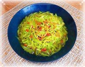 翻炒2分钟左右,青笋丝入味即可出锅,一盘春季滋补的营养笋丝就上桌了。