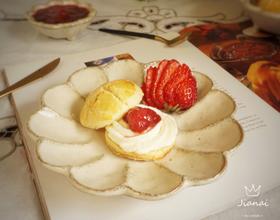 挤入提前打发好的淡奶油,中间加上一颗草莓的草莓酱,这道草莓酱小奶酥就做好了!