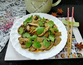 鸡肝放入盘中搅拌均匀入味放入香菜即可