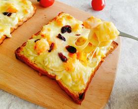 - 11. 烤箱上下管180°预热,放入做好的土司披萨烤10分钟左右。待马苏里拉融化即可,想吃焦一点的可以多烤二分钟