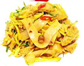 - 10. 倒入配料,凉皮切条,淋上生抽、醋、油辣椒,花椒油、芝麻酱,鸡精糖拌匀即可