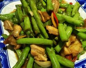 五花肉去皮切薄片,记得先煎出猪油,这样五花肉就没那么腻,会好吃很多,然后利用刚煎出的猪油煸一下豆角
