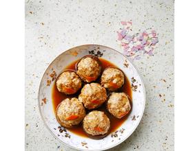 肉馅加入料酒 味达美 适量盐 搅打上劲 加入胡萝卜丁 豆腐碎 适量淀粉 一个蛋清 葱姜沫 搅拌均匀