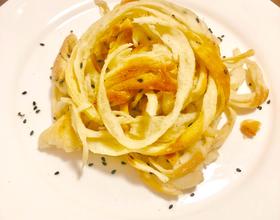 - 6. 从上往下,把面条一根根卷起,盘成圆饼