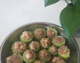肉可以稍微多放点盐,这样苦瓜比较入味,饭菜一起出锅,非常省事。清爽可口,清热解毒。一点也不腻很适合炎热的天气。