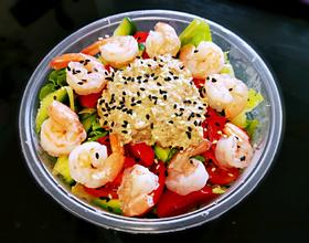 - 1. 准备食材:生菜,圣女果,小乳瓜,去头虾,沙拉酱,金枪鱼罐头。