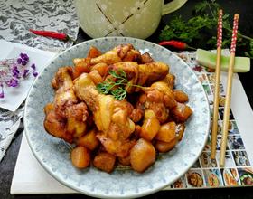 - 5. 锅内放油烧热放入土豆和鸡翅根一同翻炒