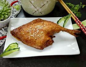 - 8. 装盘放上白芝麻和黄瓜点缀,拍上成品图,一道美味可口的香酥卤鸭腿就完成了。