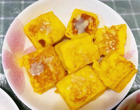 放入抹了黄油的平底锅,用最小火把吐司煎到两面金黄即可出锅,一定要注意火候,别煎太焦了;
