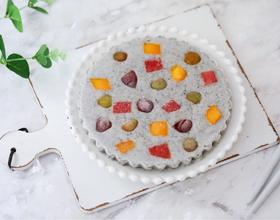 - 9. 再摆放入水果丁,最后放入冰箱冰冻4小时以上