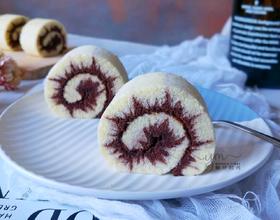 - 24. 成品图。可可旋风蛋糕卷。也可以反过来卷。可可色卷在外面,原色在里面。