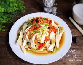 香干就是豆腐干,焯水的时候一定要多煮一会儿,凉菜该生吃的可以生,该熟吃的可不能马虎,一定要煮透。我家喜欢吃白色的,原味吃着放心点。