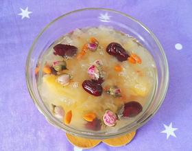 将银耳泡于水中,红枣与枸杞子清洗干净
