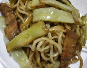 五花肉煸香出油再放入豆角,不爱吃太干的面条可以过水后在下锅