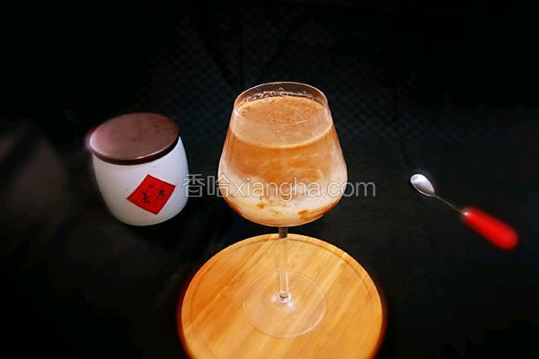 9.将香蕉咖啡汁倒入杯中,7分满。