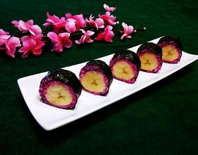 - 1. 准备食材:寿司海苔,剩米饭,红龙果。