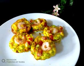 取出在鸡蛋上面加入虾仁。再烤十分钟。