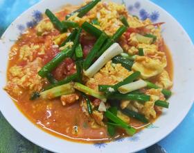 番茄切小块,葱切段,蒜切末,鸡蛋放盐 鸡精 味精调味