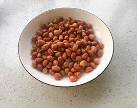 花生米变色关火,若判断不好颜色 可取一粒吹凉尝一下,若较软则再开火炸一会儿;