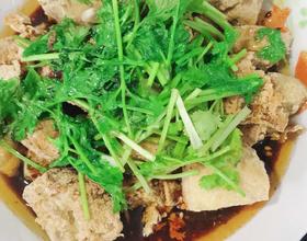 倒两勺辣椒油两勺醋豆瓣酱1勺 少许盐味精酱油三勺搅拌均匀