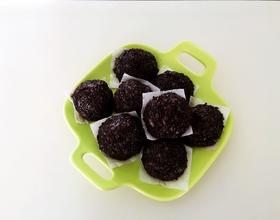 泡好的黑米控干水分,把包好的面团裹上黑米。