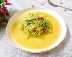 把黄瓜切成丝,也可以用工具擦成丝儿