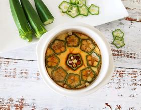 秋葵洗净,切成薄薄的片状