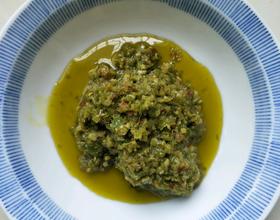 打好的蒜碎和打好的辣椒碎加盐搅拌均匀