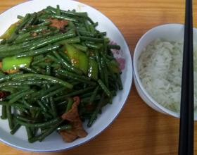 切好的肉片洗净加入喂肉料拌匀,辣椒洗净切好,长豆角切好洗净,葱姜蒜切好