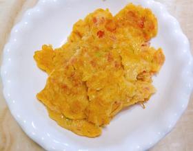 把西红柿放入碗里,加入适量面粉,在加入一个鸡蛋搅拌