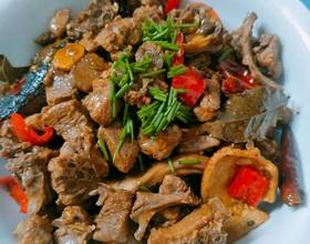 - 5. 香料、姜、蒜炒香后,放入鸭肉炒2-3分钟