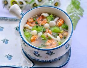 丝瓜去皮切滚刀块,葱切葱花。虾仁解冻。