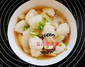再次开锅转中火,用勺子舀点鱼肉泥下入锅中,余下鱼肉依次类推