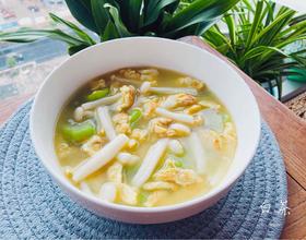 金黄鲜美的丝瓜鸡蛋菌菇汤,简单又低脂,全家都喜欢的做法