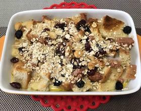 撒一点坚果和燕麦片 加入之前准备的牛奶汁