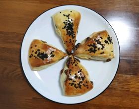 - 7. 烤箱预热185℃,趁烤箱预热,给司康刷上鸡蛋液,撒上黑芝麻,让它看起来更美。