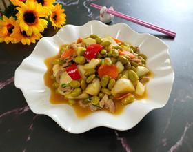 毛豆提前煮一会,如果吃的人少毛豆和茭白可以减量