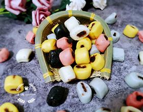 - 7. 分别有黑色(竹炭粉),黄色(南瓜),蓝色(蝶豆花),红色(红曲粉),白色原面团。