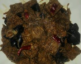 - 4. 锅里放油放入八角,放入烤麸、黑木耳、黄花菜、翻炒。
