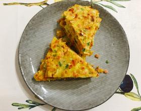 - 4. 不粘锅倒入少量食用油,把凉拌好的面糊适量倒入锅中小火慢慢煎成型,两面煎至金黄(也可以不放油,如果想更健康的话,但必须得是不粘锅)
