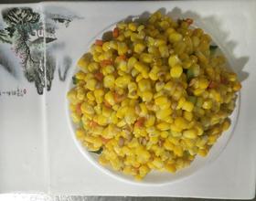 锅中放油,下入玉米翻炒两下,下入白糖 盐。加入一点点水,等糖化开,下入拌好的生分翻炒均匀即可