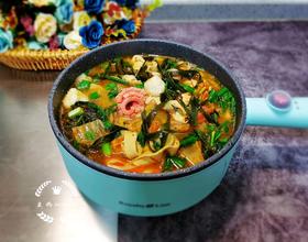 - 7. 再放入辣白菜改小火焖煮2分钟。
