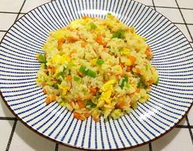 - 6. 加米饭,大火翻炒,待米饭变干按粒分开并呈现金黄色,加入鸡蛋。
