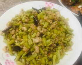放入肉馅翻炒均匀炒至七成熟加入酸豆角继续翻炒3分钟