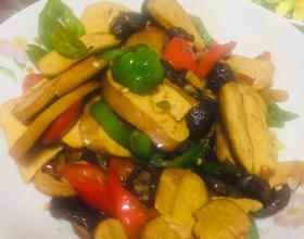 - 5. 放入泡发攥水后的小香菇同炒,炒出香味